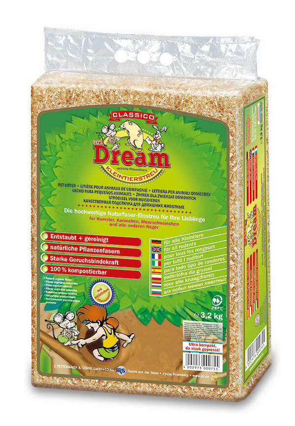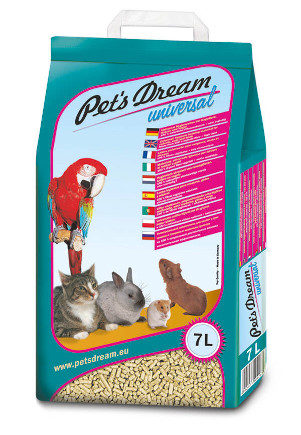 Die universelle Hygienestreu Pet’s Dream Universal für Nagetiere, Katzen und Vögel ist saugstark und bindet Gerüche ohne chemische Zusätze. Pet’s Dream Universal ist ein organisches Naturprodukt aus Pflanzenfasern und zu 100% biologisch abbaubar.